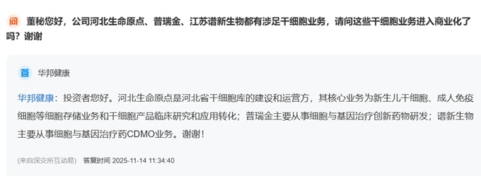 公司的河北生命原点是河北省干细胞库的建设和运营方,其核心业务为新生儿干细胞、成人免疫细胞等细胞存储业务和干细胞产品临床研究和应用转化;普瑞金主要从事细胞与基因治疗创新药物研发;谱新生物主要从事细胞与基因治疗药CDMO业务。