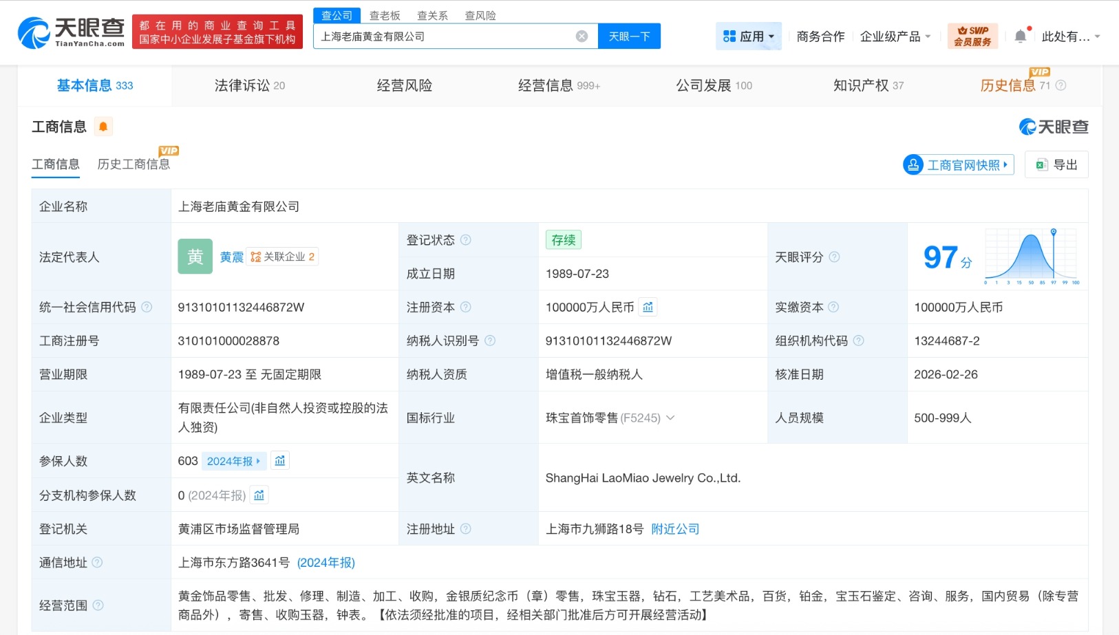 上海老庙黄金有限公司成立于1989年7月,注册资本10亿人民币,经营范围含黄金饰品零售、批发、修理、制造、加工、收购,金银质纪念币(章)零售,珠宝玉器,钻石,工艺美术品,百货,铂金,宝玉石鉴定等,由上海豫园珠宝时尚集团有限公司全资持股。