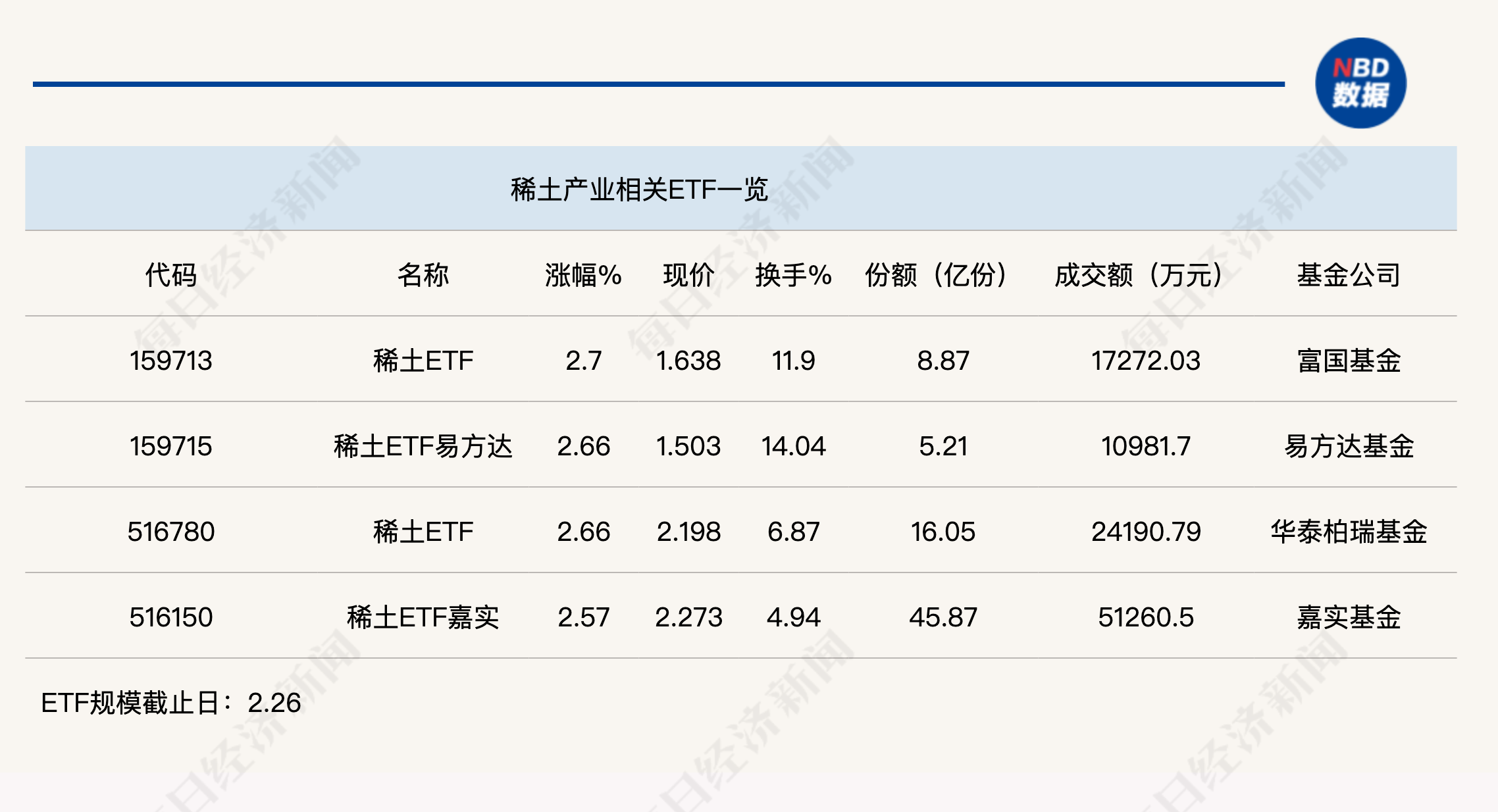 点评:稀土ETF(159713)今日上午上涨2.7%,份额达到8.87亿份,半日成交金额为1.73亿元。该ETF追踪的是中证稀土产业指数,追踪该指数的ETF还包括稀土ETF易方达(159715)和稀土ETF嘉实(516150)等。其中,稀土ETF嘉实(516150)规模较大,份额为45.87亿份,半日成交金额为5.13亿元。