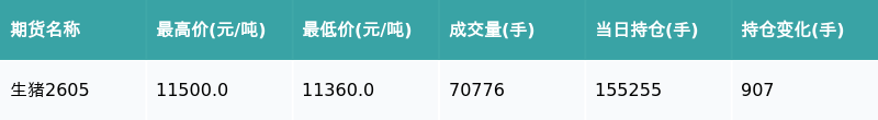 生猪主力合约收涨0.57%