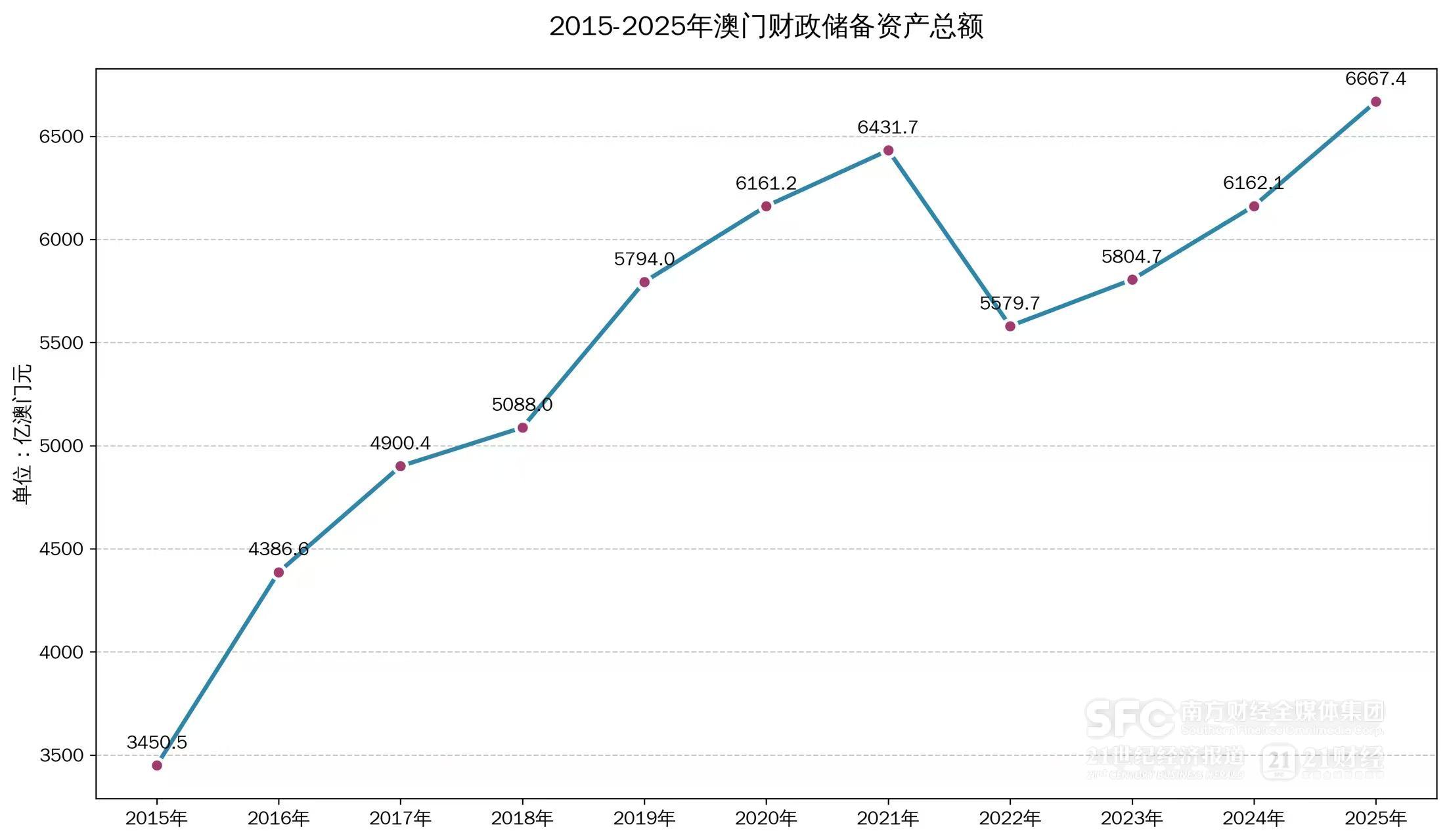 (2015年-2025年澳门财政储备资产总额。张小萌/制表)