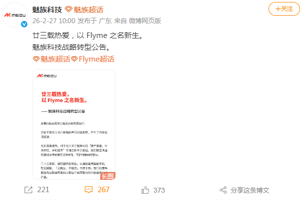 2月27日,魅族发布声明称,网上关于魅族公司“破产重组,业务停摆,手机退市”等为谣言和不实报道,将坚决追究造谣及传谣者的法律责任。