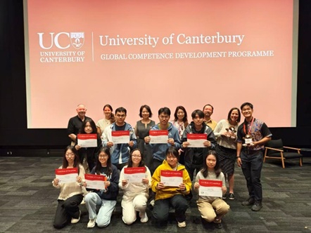 在项目成果展示环节,学生们用英文进行学术路演,从容应对评委提问。结业典礼上,坎特伯雷大学为所有学员颁发证书,为这段难忘的研学之旅画上圆满句号。