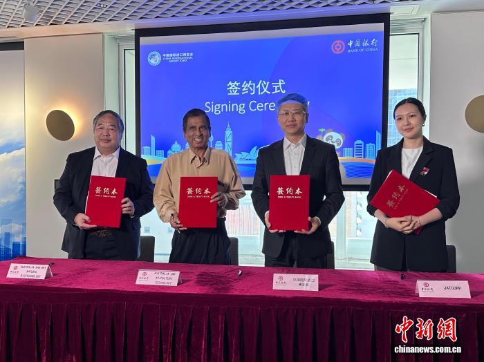 当地时间2月27日,第九届中国国际进口博览会(进博会)座谈会在澳大利亚悉尼举行。图为签约仪式现场。薄雯雯摄
