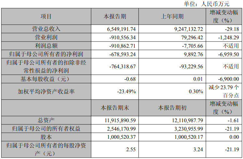 2025年度晶科能源实现营业总收入654.92亿元,同比下降29.18%;营业利润-91亿元,较上年同期减少1248.29%;净亏损67.86亿元,上年同期净利润为9892.76万元。2025年末,公司总资产1191.59亿元,较期初减少1.61%;归属于母公司的所有者权益254.62亿元,较期初减少21.19%。