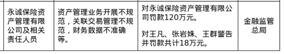 永诚保险资管被罚120万,涉资管业务开展不规范等