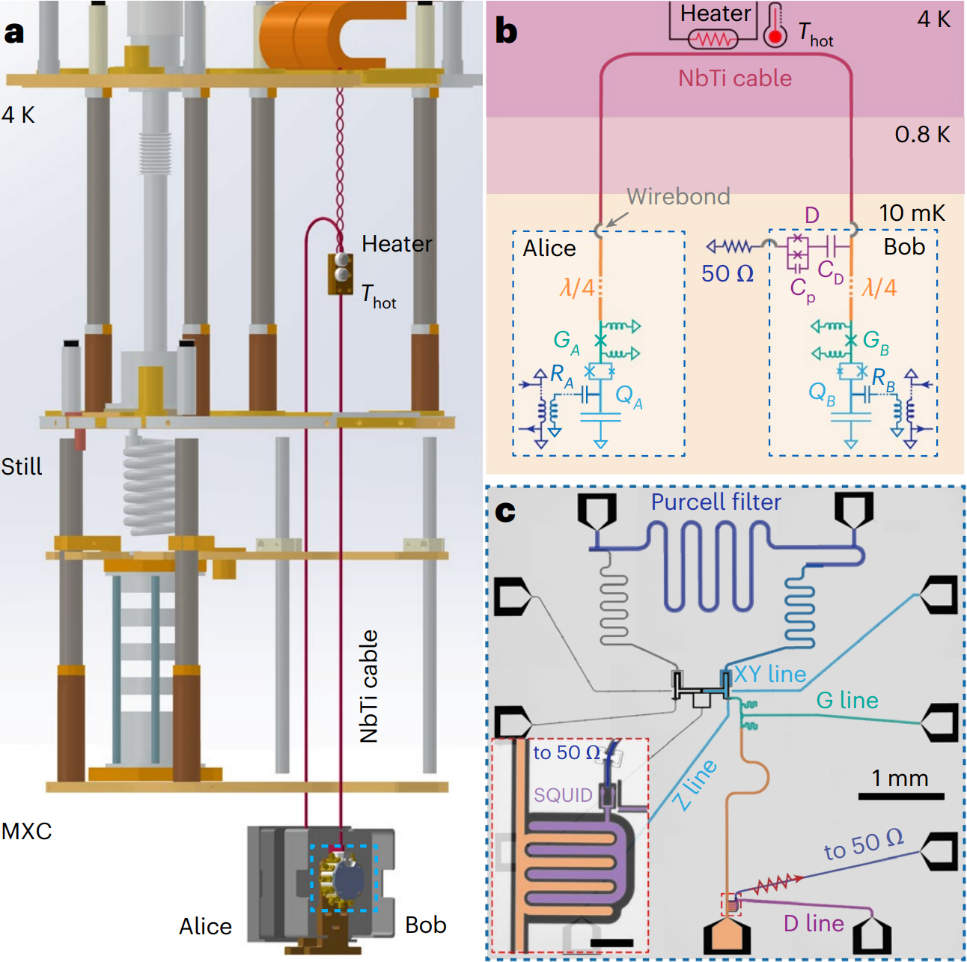深圳国际量子研究院钟有鹏研究员、俞大鹏院士团队在超导量子芯片互联领域取得重要进展,首次实现了跨越4K温区的超导量子芯片间微波量子态传输与纠缠生成。相关成果以“A thermal-noise-resilient microwave quantum network up to 4 K”为题,于2026年2月27日在国际学术期刊Nature Electronics在线发表。
