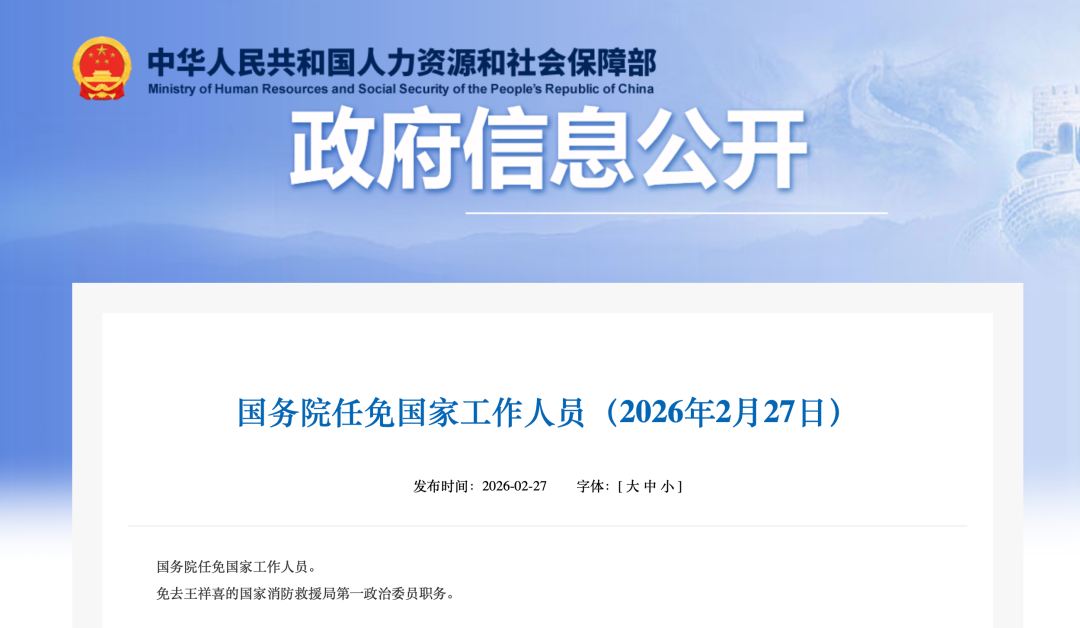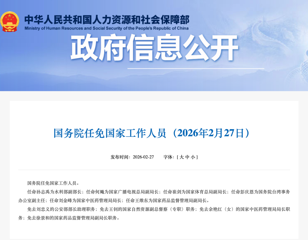 国务院任免国家工作人员(2026年2月27日)