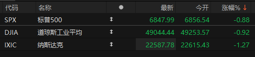 美股早盘三大股指全线走低 纳指跌超1%