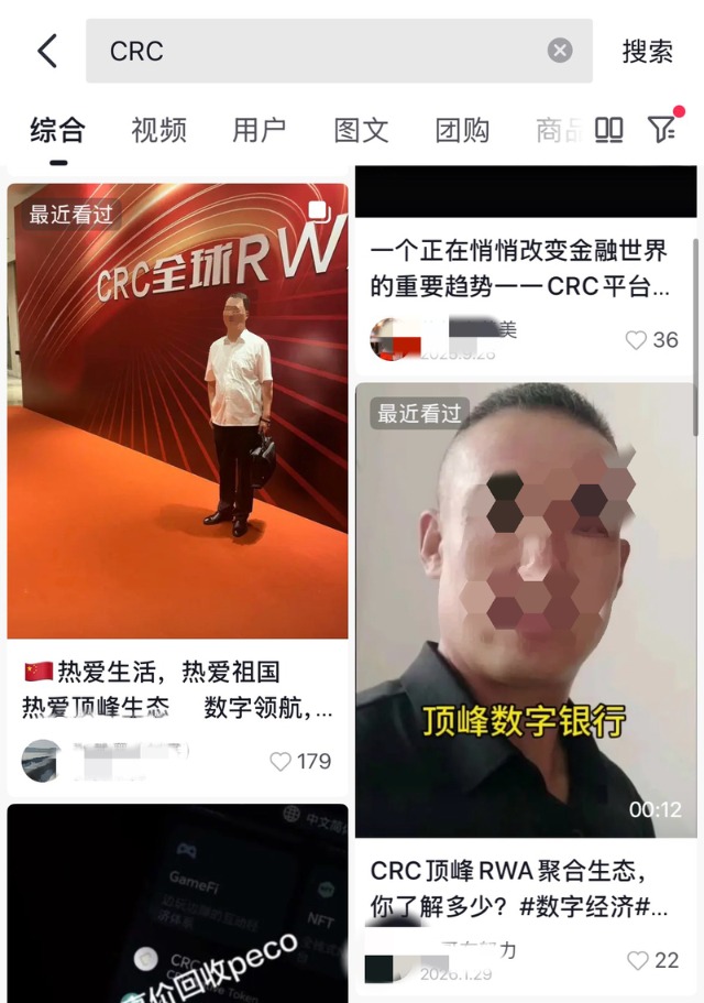 而对于这些视频中涉及的“CRC”“RWA生态”概念,记者发现这场“资金盘”骗局已经持续数年,幕后推手疑似通过炒作上述概念,进行非法集资。