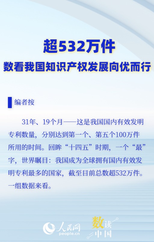 数读中国 超532万件!数看我国知识产权发展向优而行