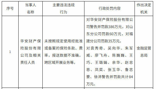 华安保险被罚386万,两家分公司合计被罚95万
