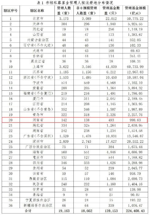 记者注意到,截至1月末,河南省私募基金管理人142家,管理基金493只,在管基金规模998.63亿元。