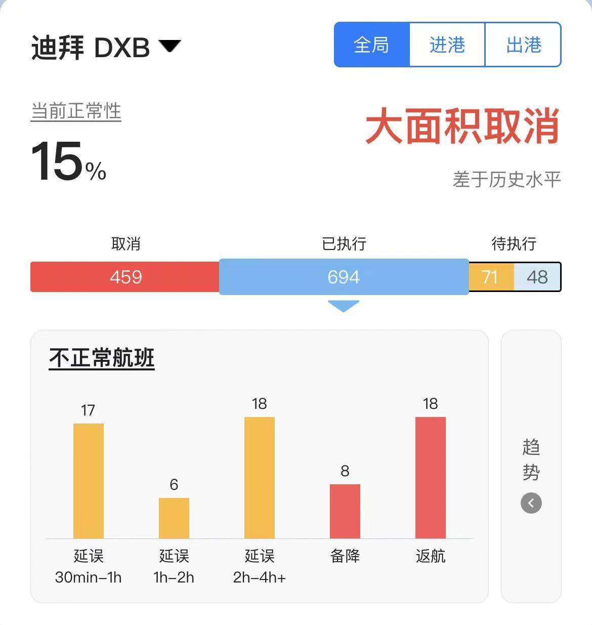 迪拜国际机场大规模航班取消图片来源:飞常准