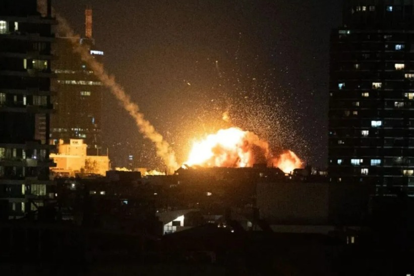 2月28日晚,以色列特拉维夫市区传出巨大爆炸声,有建筑物冒出火光。新华社发