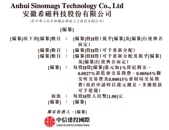 2月27日,港交所披露文件显示,安徽希磁科技股份有限公司(以下简称“希磁科技”)已向港交所正式递交上市申请,中信建投国际担任独家保荐人。