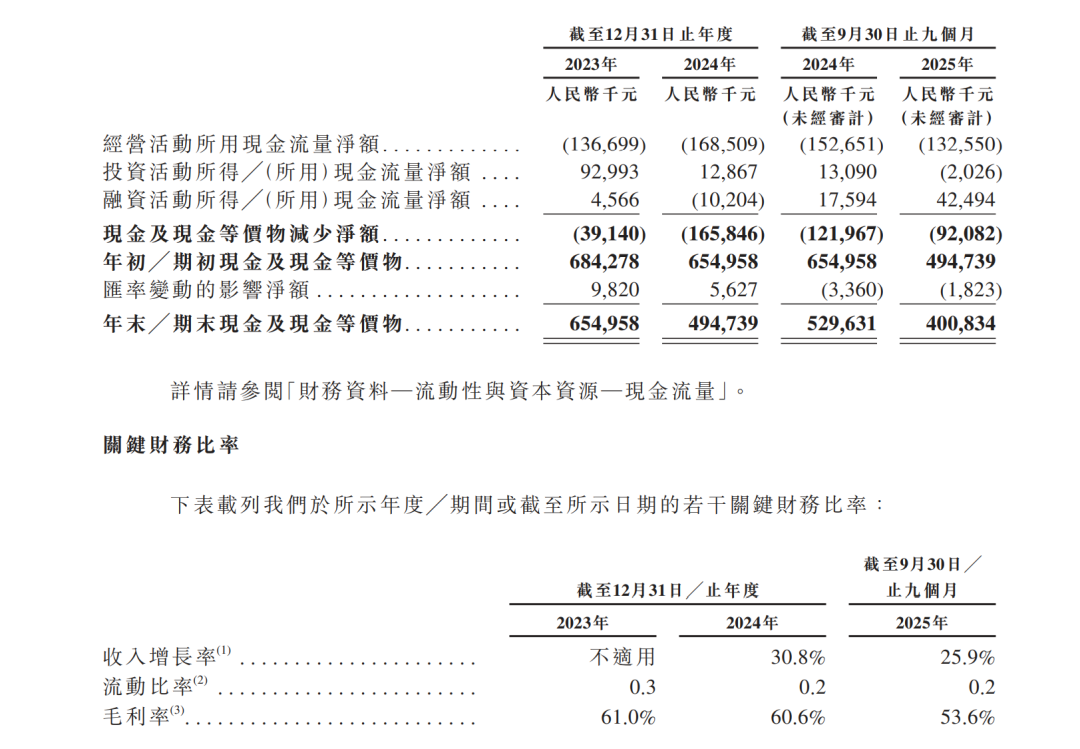再惠的经营性现金流持续净流出。2023年至2025年前三季度分别为-1.37亿元、-1.96亿元、-1.33亿元,显示公司持续处于“失血”状态。截至2025年9月30日,公司持有的现金及现金等价物仅为4亿元,而流动资产与流动负债的缺口持续扩大,流动比率仅为0.2,流动性风险日益凸显。