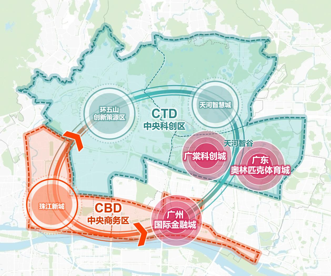 天河“CBD+CTD双核引领”战略空间示意图