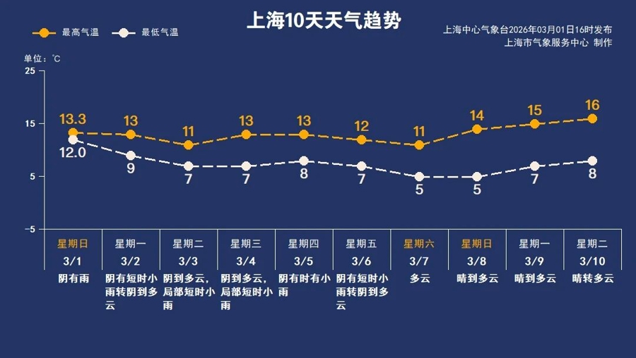 上海开学日遇湿冷,入春冲刺就看明天,未来一周阴雨频繁