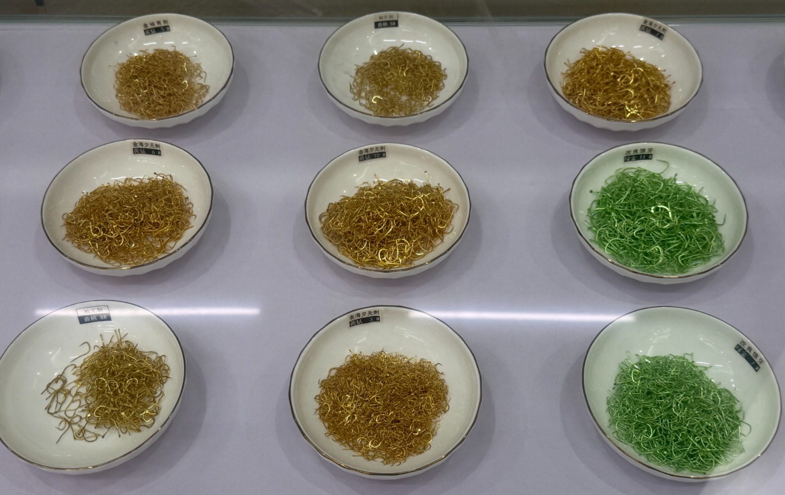 (图:不同材质、色泽的鱼钩傅天明|摄)