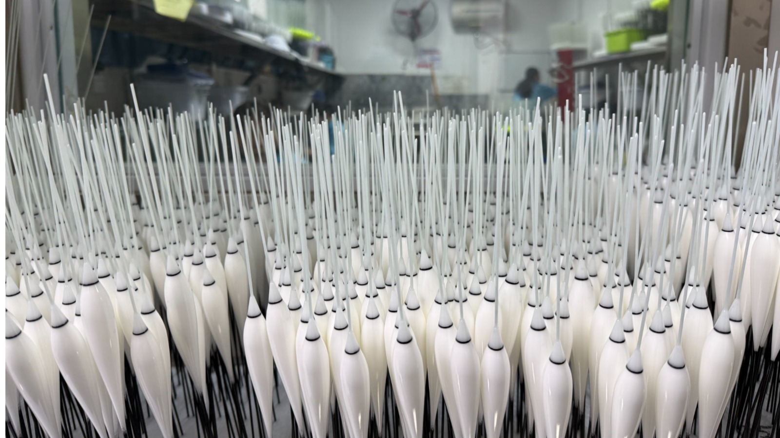 打磨曾是浮标生产中最依赖人工的环节,本地龙头企业池海浮标的负责人李建明对此深有体会。三十年前,他以300元起家创办池海。作为机电专业出身的技术员,他坚信“品质稳定的核心在设备,不在人工”,其累计投入超4600万元研发自动化生产线,从一代迭代至六代,攻克AI智能绑钩等全球技术难题,“我们是自己淘汰自己,才能不被市场淘汰”,因为坚持将60%利润投入研发,即便行业内卷,池海仍保持超10%的企业利润率。