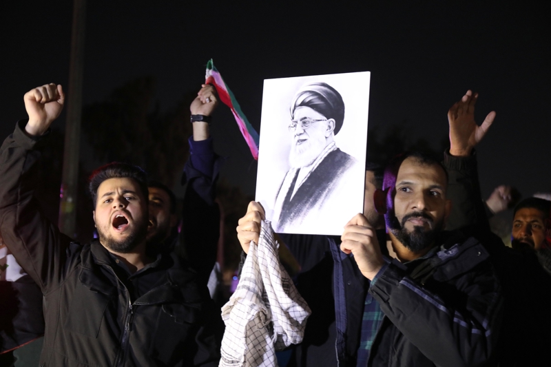 2月28日,民众在伊拉克首都巴格达举行示威,抗议美国和以色列军事打击伊朗。 新华社发
