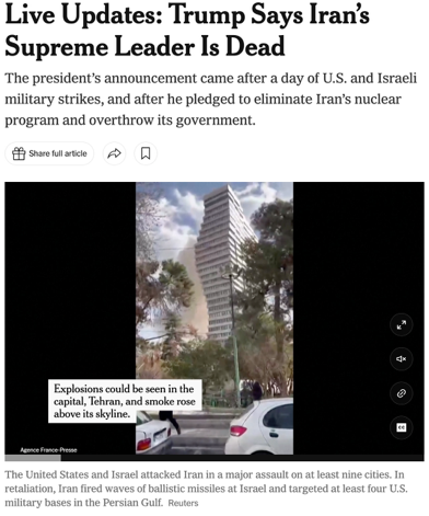 △《纽约时报》报道,此次对伊朗行动可能在伊朗以及更大地区范围内引发巨大政治变革。