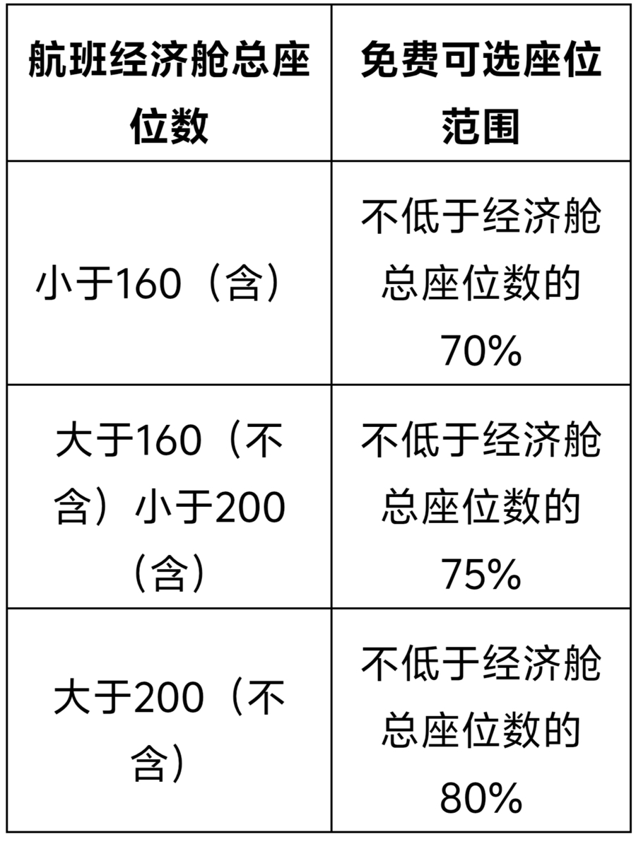 新规要求,经济舱免费可选座位范围应达到一定比例。