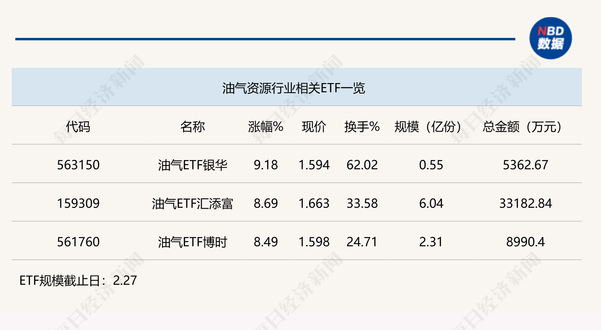 行业ETF风向标丨卫星ETF半日成交达20亿元,三只油气资源ETF半日涨幅超8%