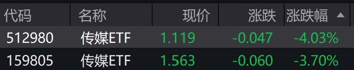 传媒概念股走低,传媒ETF跌约4%