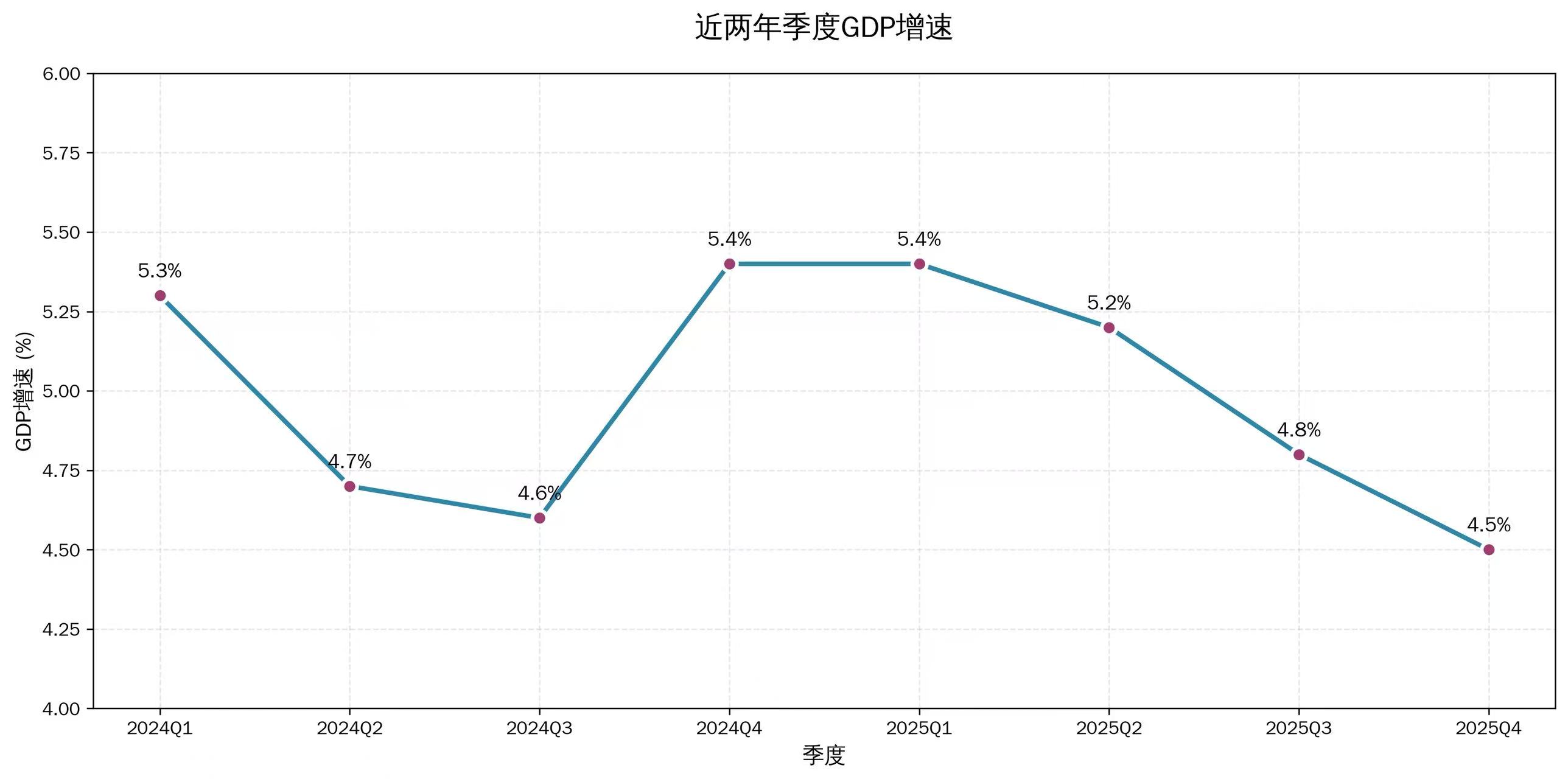 但随后的2025年,在前两季度分别实现5.4%、5.2%的经济增速后,增速再度回落至4.8%及更低区间。