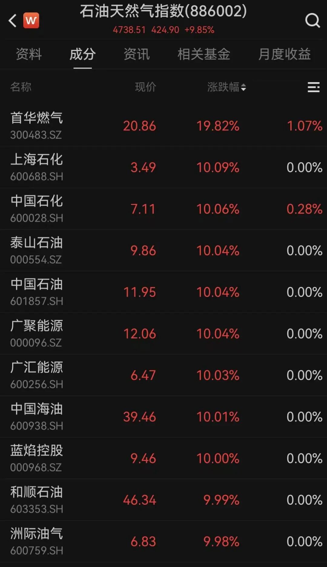 2日,A股沪指成功收红。盘面上,石油天然气板块表现亮眼,大涨近10%,中国石油、中国海油、上海石化、泰山石油、广聚能源、洲际油气等相关个股封涨停。黄金等贵金属板块亦显著走强,华锡有色、四川黄金、西部黄金、湖南黄金等个股涨停。