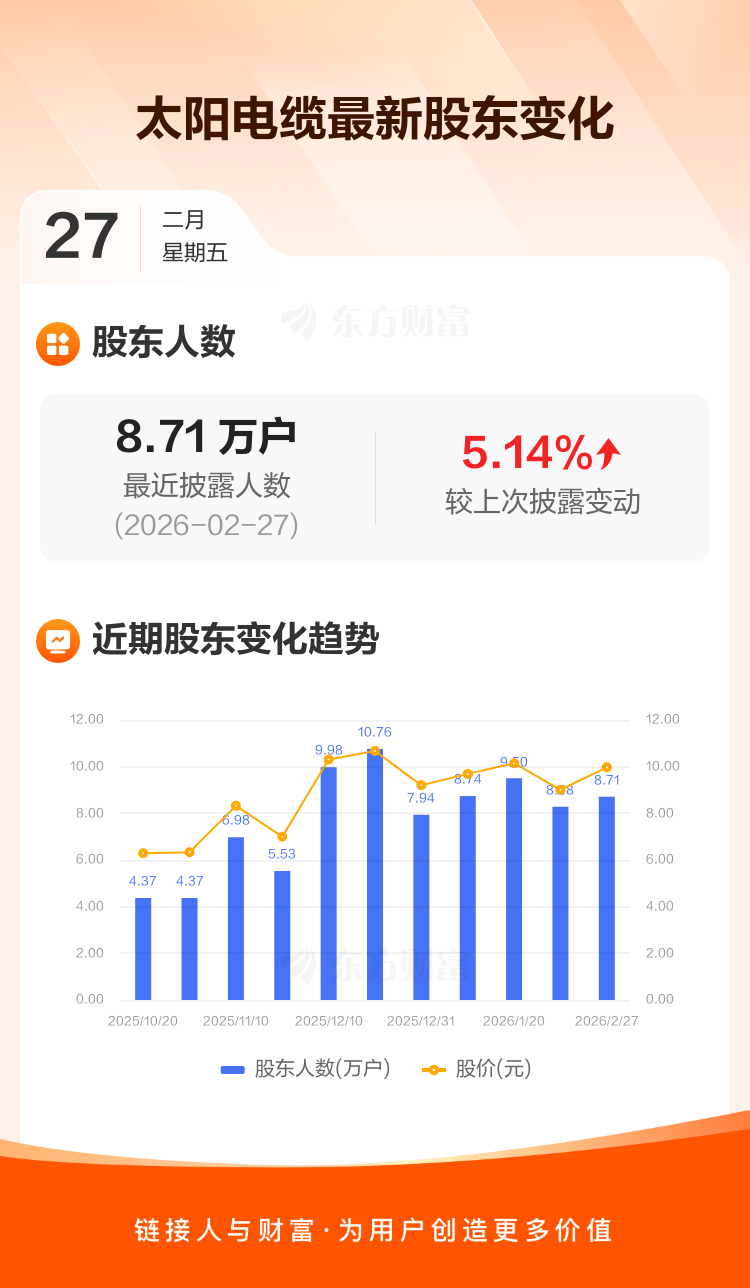 太阳电缆:截至2月27日最新股东户数8.71万户,较上期增加5.14%