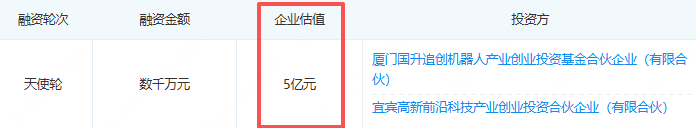 据企查查显示,本轮融资由宜宾高新前沿科技产业创业投资基金与厦门国升追创机器人产业创业投资基金联合完成。