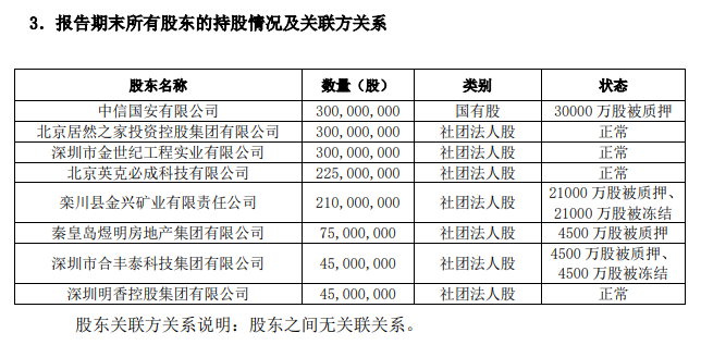 从股权结构来看,金兴矿业为和泰人寿第五大股东,共持有2.1亿股股份,持股比例为14%。目前,这部分股权全部处于被质押、冻结状态。