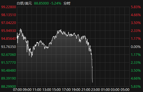 上证报中国证券网讯据Choice数据,3月2日晚间,国际现货黄金、白银短线跳水。截至22:26,现货黄金报5318.32美元/盎司,日内涨幅缩窄至0.74%;现货白银报88.85美元/盎司,日内跌5.24%。