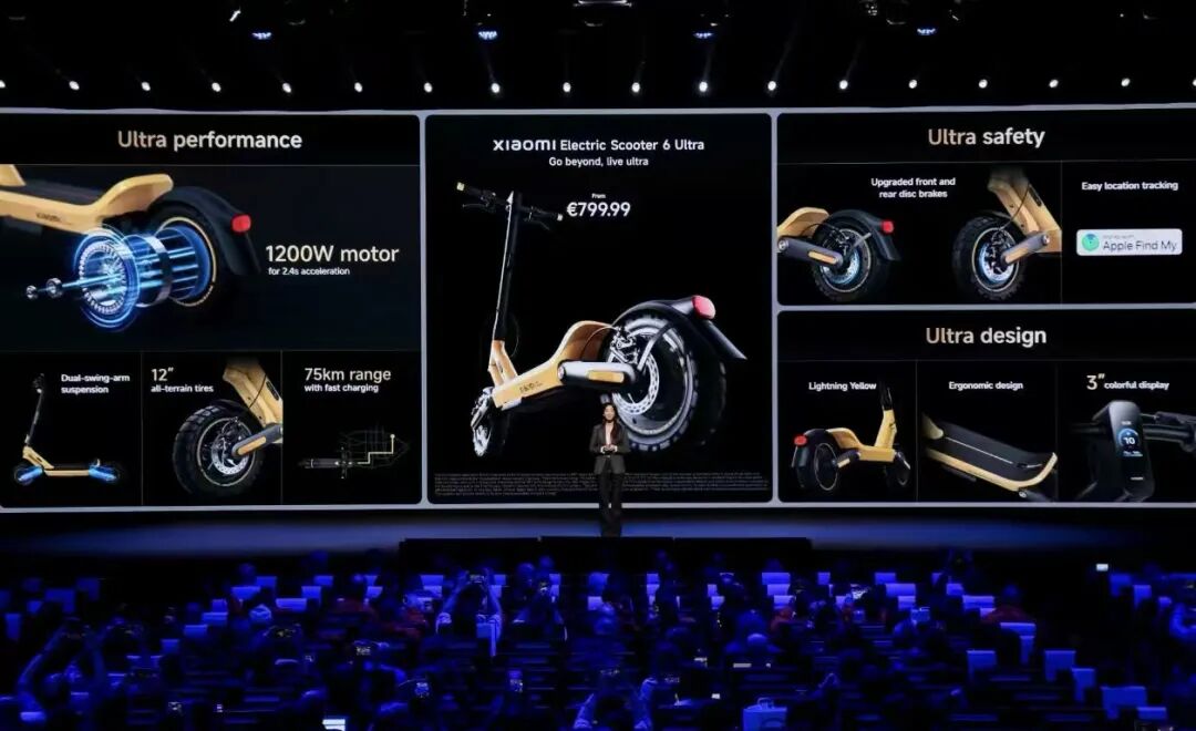 据悉,小米集团正在海外市场全面推进高端化战略,同场发布的小米平板8系列、小米电动滑板车6 Ultra和小米Watch 5等AIoT新品均定位高端,其中小米电动滑板车6 Ultra售价799欧元起。