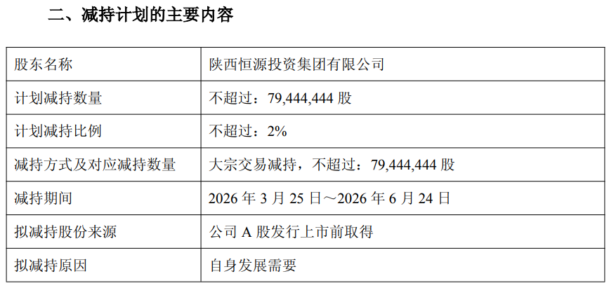 2025年4月11日至5月12日,恒源投资通过大宗交易方式累计减持其所持有的7932.78万股公司股份(占公司总股本的2%),累计套现2.96亿元。