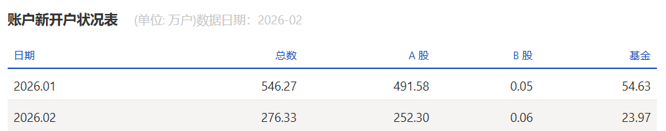 2026年2月A股新开户数252.3万户