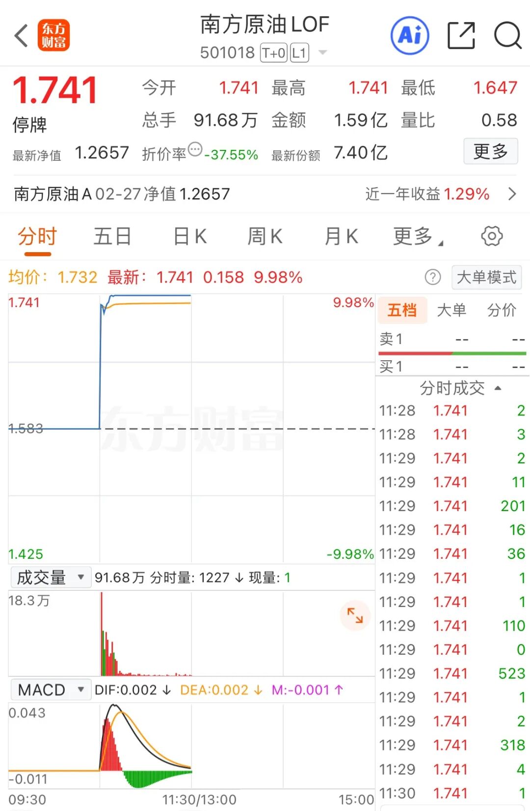 今日早间,石油基金LOF复牌涨停,南方原油LOF、原油LOF易方达复牌双双涨超9%。