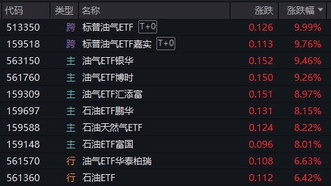 石油概念股走强,油气相关ETF集体大涨,标普油气ETF涨停
