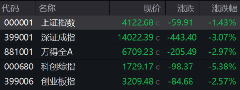 收盘丨深成指跌超3%,全市场超4800只个股下跌