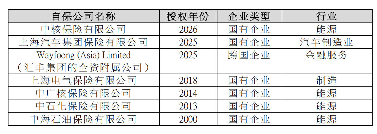 自2000年中海石油保险有限公司在港注册后,先后有中石化保险有限公司(2013年)、中广核保险有限公司(2014年)、上海电气保险有限公司(2018年)等内地大型企业的专属自保公司在港拿牌展业。中断数年后,2025年,汇丰集团、上汽集团相继在港设立自保公司。