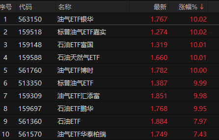 从3月3日ETF表现来看,油气主题ETF继续领涨,截至收盘,银华油气ETF、嘉实标普油气ETF等批量涨停。