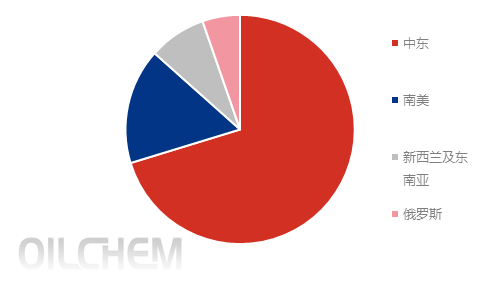 中国甲醇进口货来源结构,图片来源:隆众资讯