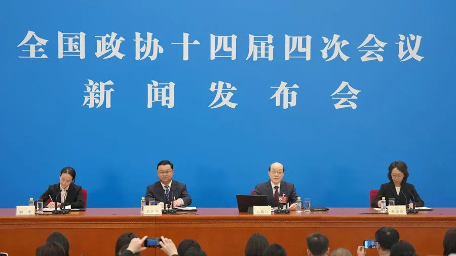 今天下午,全国政协十四届四次会议新闻发布会在北京人民大会堂举行,大会新闻发言人刘结一向中外媒体介绍大会有关情况并回答记者提问。