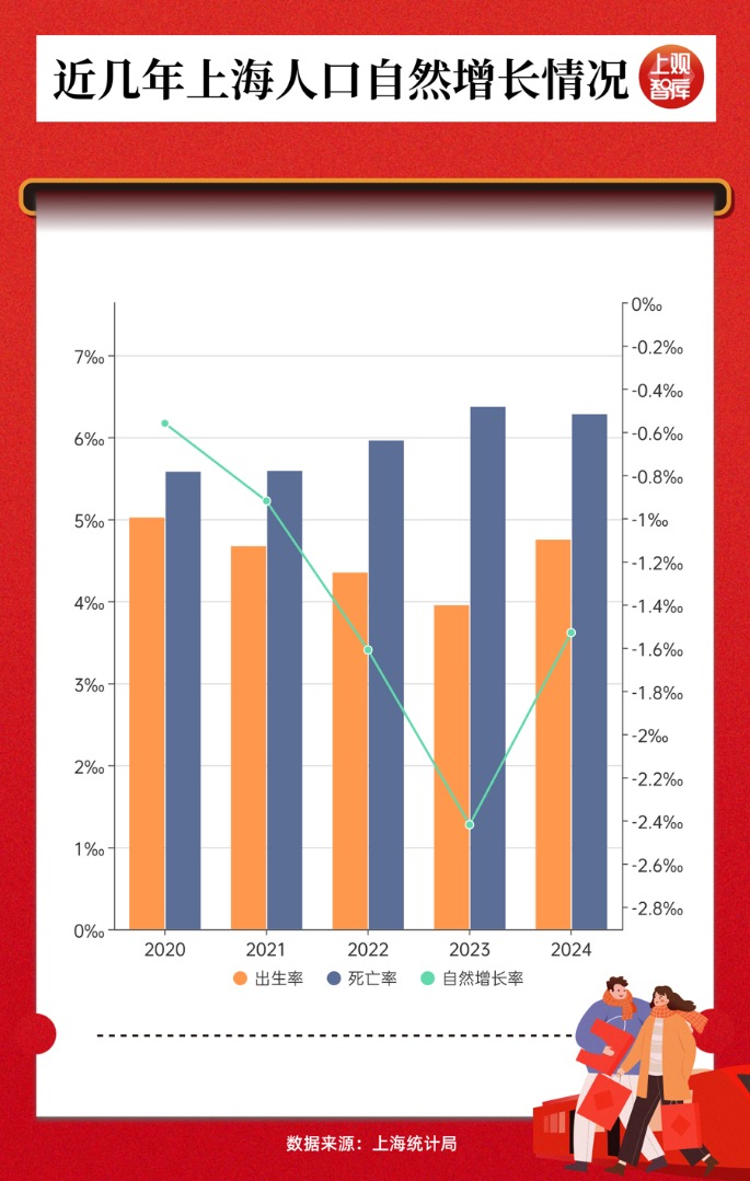 不可否认,尽管2024年的出生率较2023年略有回升,但上海低生育率和高龄化导致的人口自然减少趋势持续。常住人口自然增长略有下跌。