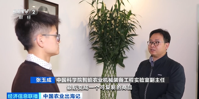 中国科学院智能农业机械装备工程实验室副主任张玉成:科技走出实验室变成产品,最后变成可复制的商品。靠我们现在国家现有的科技力量投入和那么多的人才储备,我相信是完全有基础的。来(向世界)提供中国的先进的现代化农业生产解决方案。