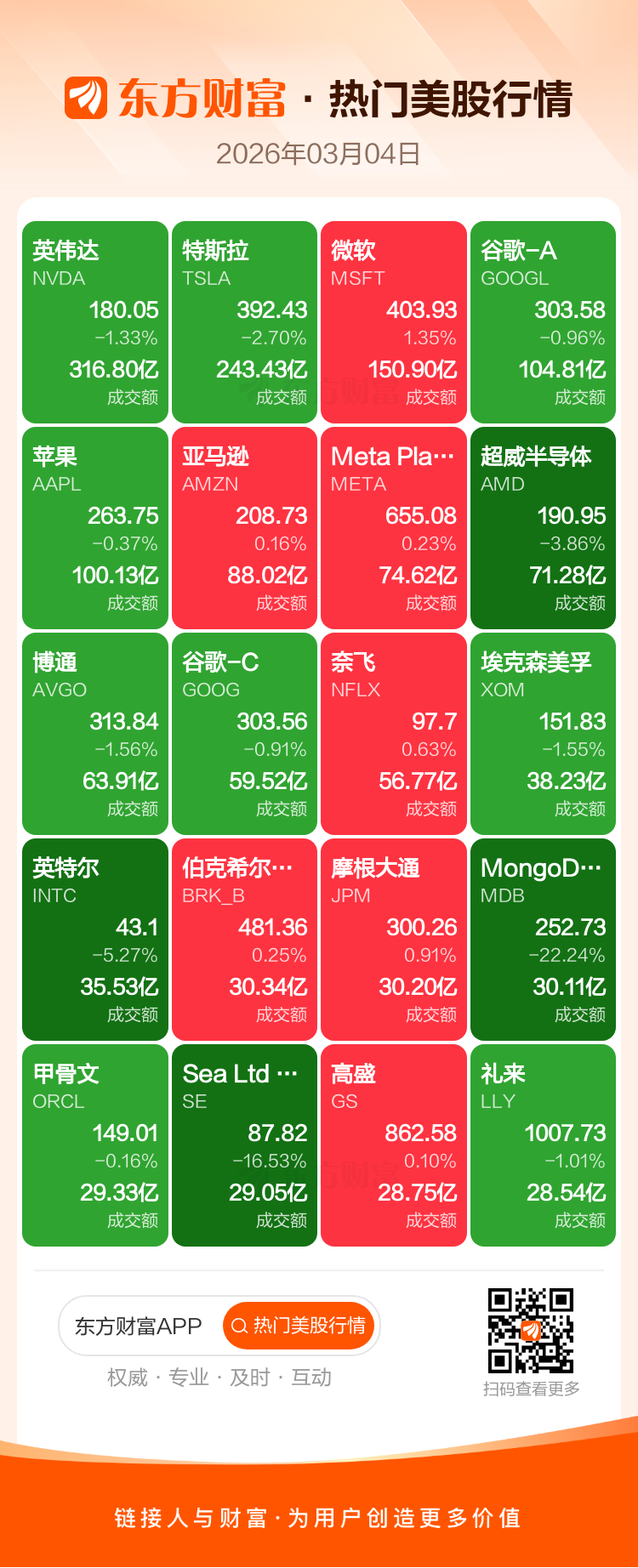 3月3日(周二)热门美股、中概股收盘一览