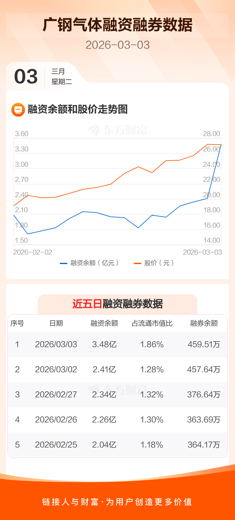 交易所最新数据显示,广钢气体于2026年3月3日获融资买入1.87亿元,融资偿还7977.73万元,当日融资净买入1.07亿元。目前,该股融资余额3.48亿,占流通市值比例为1.86%。